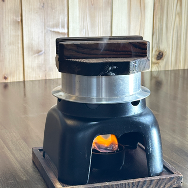 It includes four rare Wagyu cuts—such as Zabuton and Uchi-Harami—prepared over traditional charcoal fire.