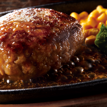和牛を粗挽きにし、肉の食感と旨みを最大限に引き出したハンバーグ。